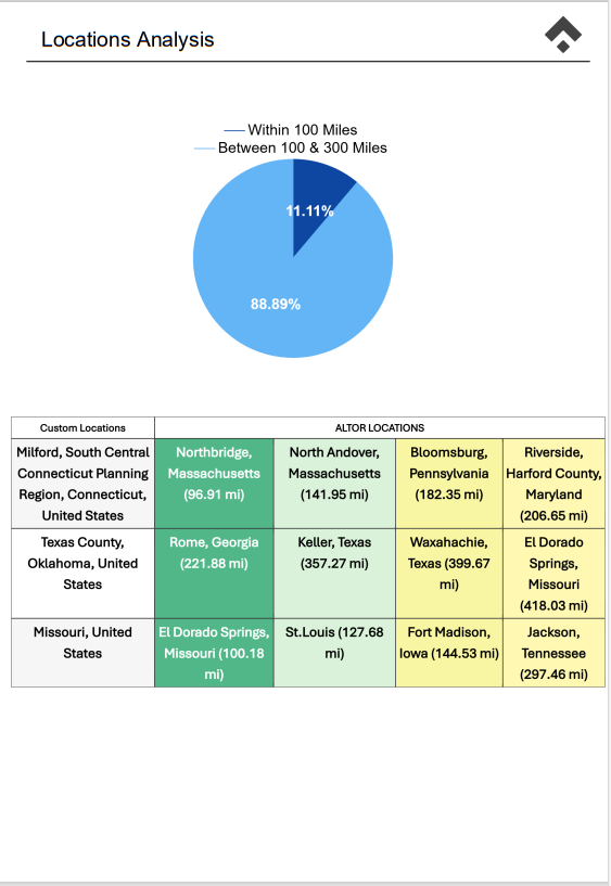 **Receive your custom-built report showcasing the closest Altor locations within 100 and 300 miles to support faster, smarter operations and sustainability decisions